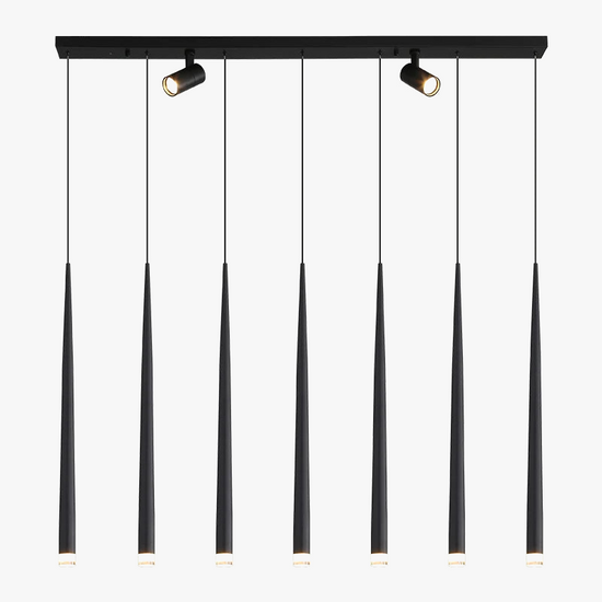 Ce lustre design se distingue par un esthétisme affirmé et une inventivité hors pair. Ses lignes épurées et son style contemporain le transforment en une pièce maîtresse de votre décoration, bien plus qu'un simple luminaire. Sa finition en noir mat et brossé le rend parfait pour s'intégrer dans des intérieurs modernes, industriels ou même minimalistes.