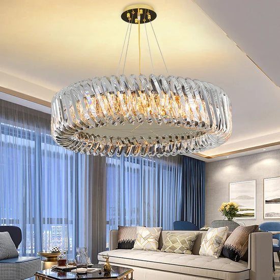 Découvrez le lustre en cristal lumineux design contemporain raffiné, un véritable chef-d'œuvre qui transformera instantanément l'ambiance de vos espaces de vie. Conçu avec une précision méticuleuse, ce luminaire allie parfaitement sophistication technique et esthétique élégante, offrant bien plus qu'un simple éclairage - une véritable expérience visuelle. Avec son allure luxueuse inspirée des tendances européennes, ce lustre sublime saura s'harmoniser parfaitement à votre intérieur, qu'il s'agisse de votre salon, de votre chambre ou de votre salle à manger.