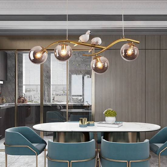 Le lustre fer élégant et lumineux est bien plus qu'un simple éclairage. Ce luminaire distingue votre décoration intérieure et lui confère une élégance intemporelle. Conçu avec une précision inégalée, ce chef-d'œuvre moderne vous offre un design sophistiqué mêlant esthétisme et performance. Sa structure en fer noir et or, ornée d'une boule de verre délicate et d'un oiseau métallique artistique, en fait non seulement un point de lumière, mais également une pièce d'art captivante.