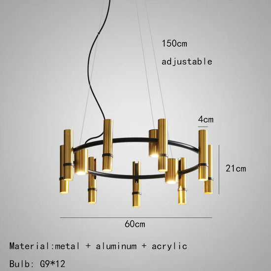 Avec notre lustre doré moderne polyvalent, embellissez vos espaces tout en réalisant des économies d'énergie. Conçu pour répondre aux exigences modernes tant esthétiques que pratiques, ce lustre est la solution idéale pour ceux qui ne souhaitent pas compromettre sur la qualité ni la beauté.