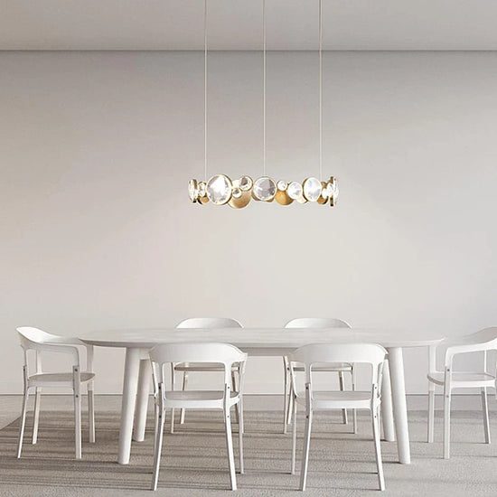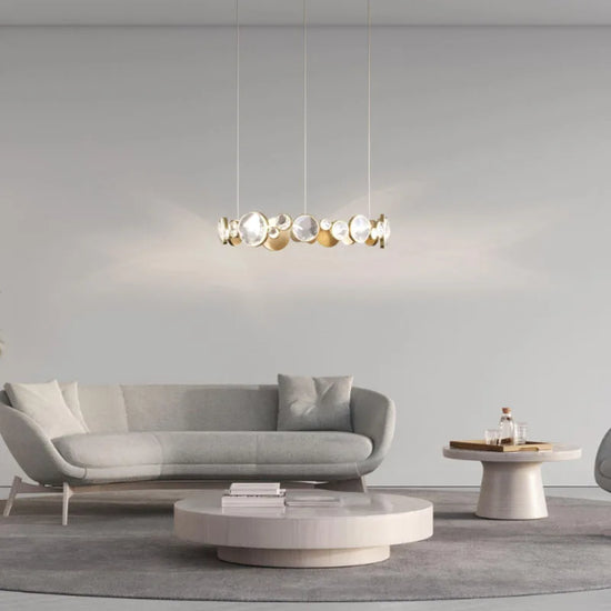 La suspension Cristal Doré Élégance LED est bien plus qu'une simple source de lumière. Offrez à votre intérieur une ambiance exceptionnelle avec ce lustre au design moderne et raffiné. Que ce soit pour votre salon, votre salle à manger, votre cuisine ou votre chambre, cette pièce maîtresse de décoration offre une luminosité brillante et ajoute une touche de luxe et de charme à votre espace. Grâce à sa structure en cristal doré, ce luminaire LED se distingue par sa silhouette épurée et son éclairage subtil qui évoquent une atmosphère à la fois chaleureuse et élégante.
