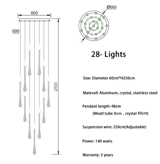 Élevez l'esthétique de votre intérieur avec notre **lustre design** qui ne se contente pas d'illuminer vos pièces, mais qui les orne tel un bijou. Les éclats scintillants des cristaux procurent une atmosphère chaleureuse et distinguée, idéale pour recevoir des invités ou pour vos moments de détente personnelle.
