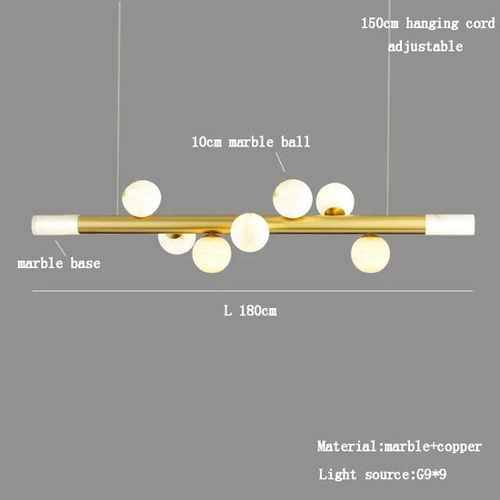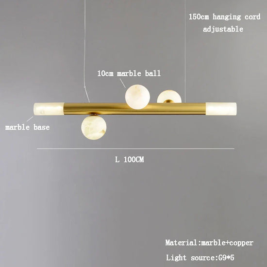 Apportez une touche d'élégance à votre maison avec notre lustre élégant suspendu luxueux. Conçu pour transformer et ennoblir votre espace, ce lustre exceptionnel marie un design post-moderne épuré avec des matériaux de haute qualité comme le marbre véritable et le cuivre poli. Parfait pour les amateurs de style inégalable, ce luminaire devient le point de convergence de votre salon ou de toute autre pièce, grâce à son esthétisme raffiné et sa capacité à fournir une illumination sublime. Intemporel par essence, il s'harmonise avec n'importe quel type de décoration intérieure, ajoutant un clin d'œil contemporain à des intérieurs classiques ou modernes.