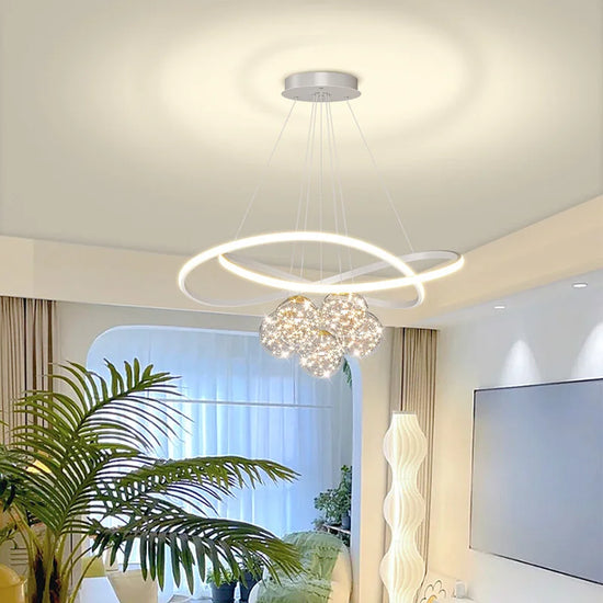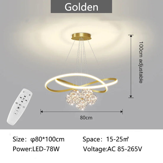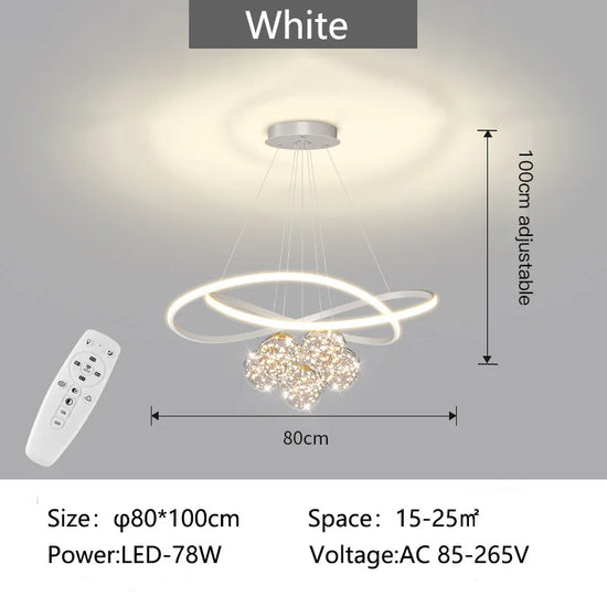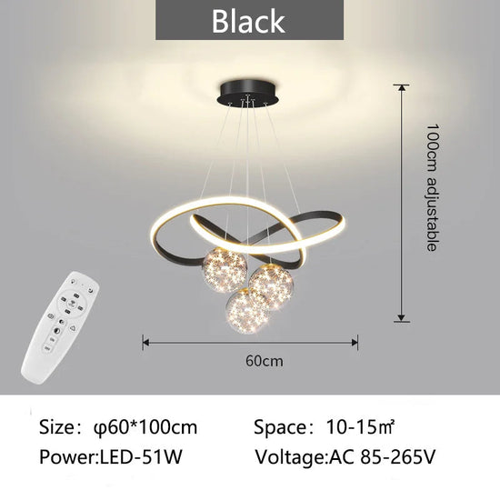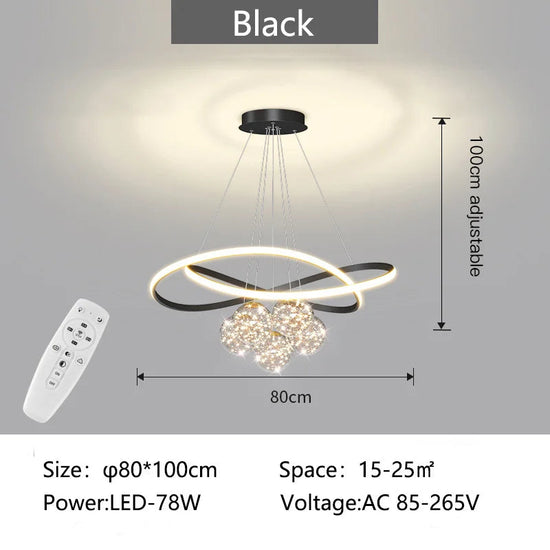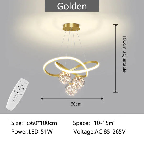 La suspension décorative moderne épurée est un savant mélange de technologie avancée et de design raffiné. Dotée d'ampoules LED intégrées, elle garantit un éclairage puissant tout en minimisant la consommation électrique. Grâce à la télécommande incluse, vous avez la possibilité de moduler l'intensité lumineuse selon vos besoins et vos envies, offrant ainsi la flexibilité de créer l'ambiance idéale en un instant.
