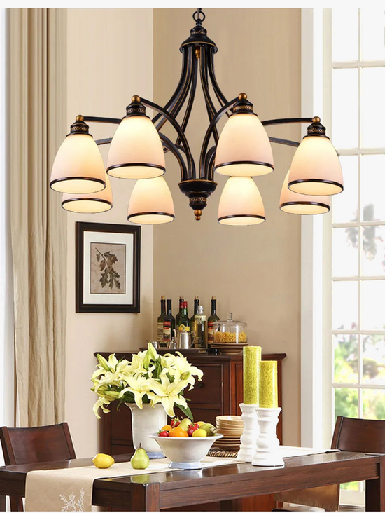 Opter pour notre lustre rétro chaleur rustique campagne boisée signifie choisir bien plus qu'un simple dispositif d'éclairage. Sa structure en fer noir combine durabilité et esthétique, tandis que l'abat-jour en verre dépoli optimise la diffusion de la lumière, transformant chaque pièce en un espace chaleureux et élégant. Ce luminaire est conçu pour une performance optimale, vous garantissant un éclairage parfait.