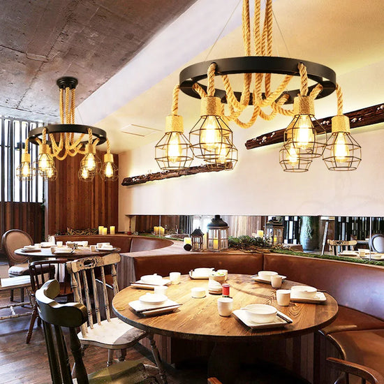 Plongez dans l'univers fascinant du suspension industrielle rétro vintage, un luminaire qui combine avec brio l'esthétique intemporelle du design vintage à la sophistication du style industriel moderne. Fabriquée avec une attention minutieuse aux détails, cette suspension en cordage de chanvre et métal s'affirme non seulement comme une source lumineuse, mais également comme un véritable atout décoratif capable de transformer votre espace.
