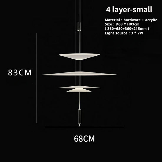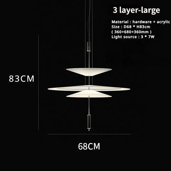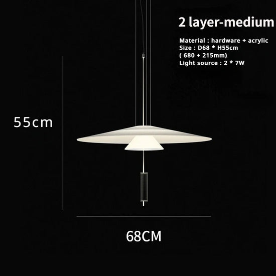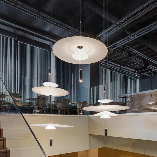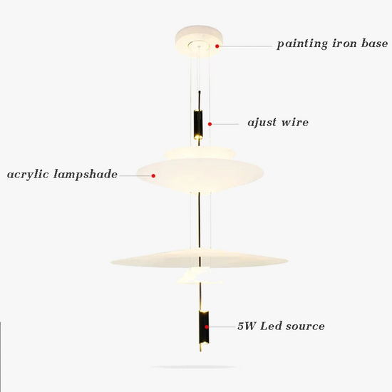 Ce lustre pendant incarne l'innovation technologique avec son design aérodynamique blanc. Fabriqué en matériaux de haute qualité comme l'acrylique et le fer, il résiste au temps tout en apportant une touche futuriste à votre intérieur. Sa structure plane et lisse imite l'esthétique d'une soucoupe volante, engendrant des discussions sur son style avant-gardiste et son impact visuel saisissant.