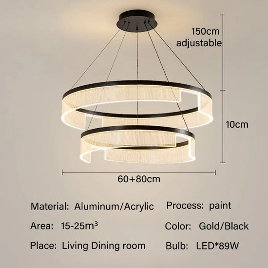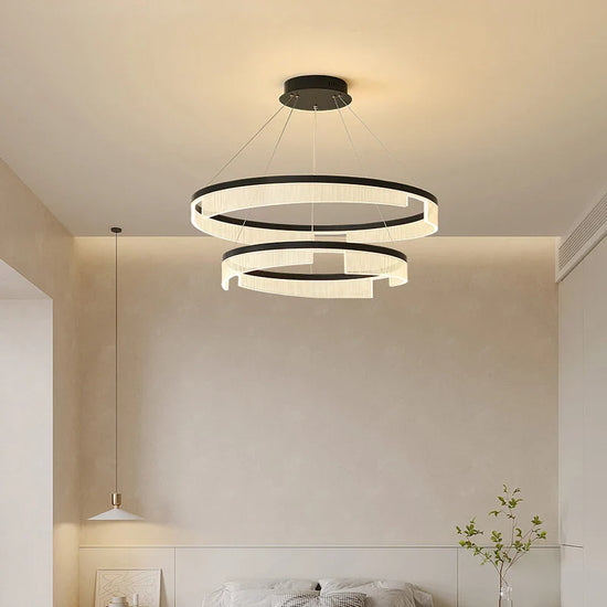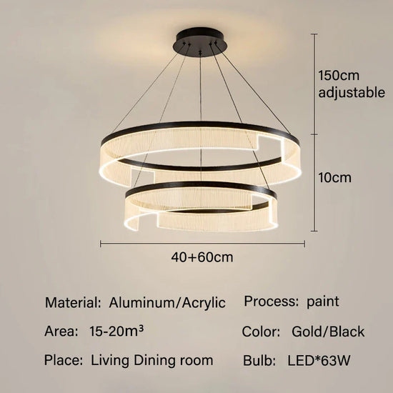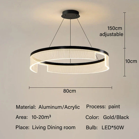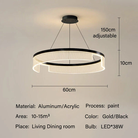 Élevez le design de votre maison grâce au Lustre LED Anneau Minimaliste Élégant, un chef-d'œuvre alliant un design contemporain et des aspects pratiques exceptionnels. Ce luminaire LED est plus qu'une simple source de lumière : c'est une affirmation de style et de modernité. Il est conçu pour s'intégrer harmonieusement dans tout environnement moderne, qu'il s'agisse de votre salon, salle à manger ou chambre à coucher, en apportant une ambiance chic et sophistiquée.