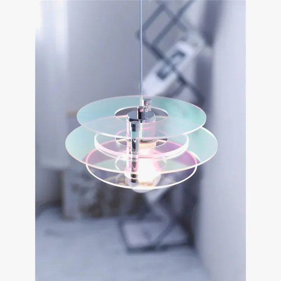 Le lustre vintage OVNI est bien plus qu'un simple luminaire. Sa structure robuste en métal associée à un abat-jour en acrylique lui confère une durabilité sans compromis et une élégance intemporelle. Il capte et diffuse la lumière de manière à créer une ambiance unique et envoûtante, réinterprétant ainsi l'éclairage intérieur comme une expérience immersive.