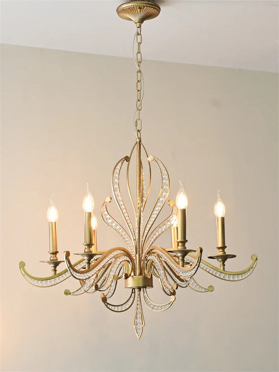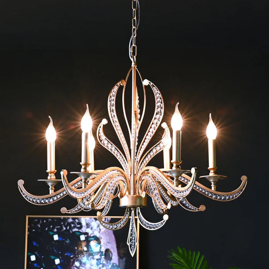 Lustre en métal doré cristaux élégants : La Sophistication Lumineuse