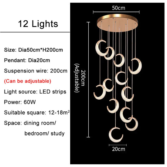 Optez pour le Lustre LED Lune Design Suspendu et rehaussez l'élégance de votre intérieur avec un éclairage qui combine esthétisme et efficacité. Avec des caractéristiques techniques supérieures et une attention aux détails, ce luminaire est le choix par excellence pour les amateurs de design sophistiqué.