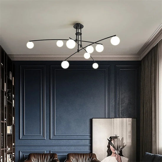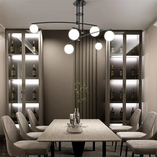 Le lustre LED Design Chic Moderne se démarque par sa structure robuste et son design raffiné. Conçu en fer avec une finition impeccable, ce luminaire intègre des boules de verre dépoli, enveloppant les ampoules LED et créant un effet lumineux subtile mais impressionnant. Adaptable à n'importe quel espace, que ce soit dans un salon, une cuisine ou une salle à manger, ce lustre s'harmonise avec vos décorations intérieures, apportant une ambiance conviviale et moderne.