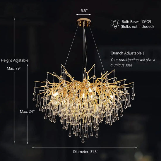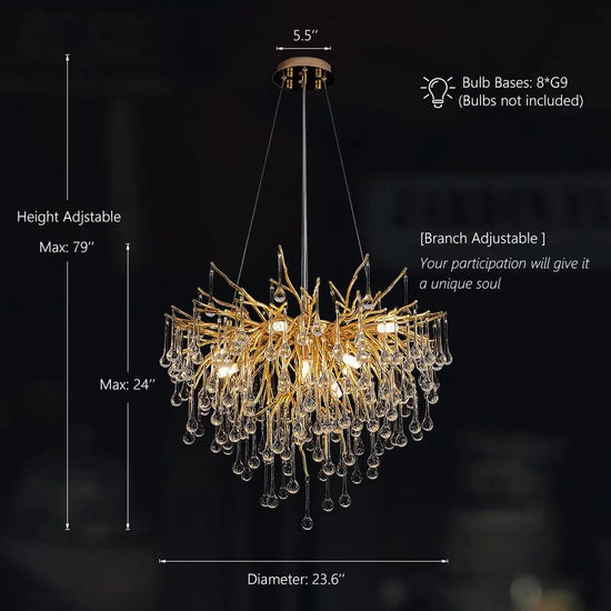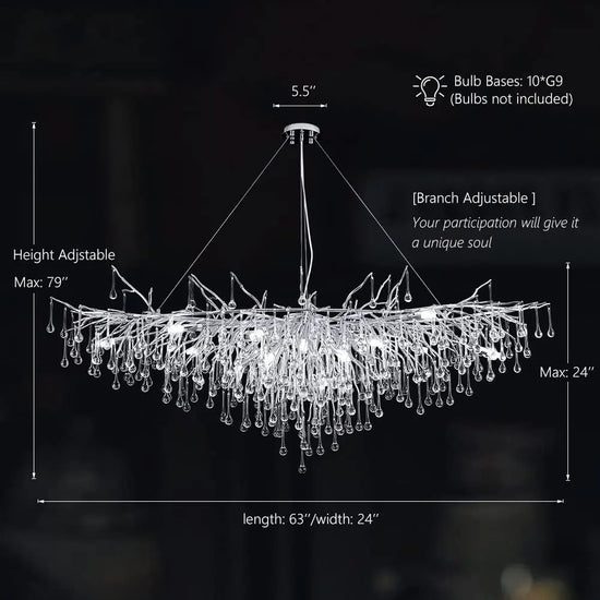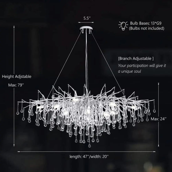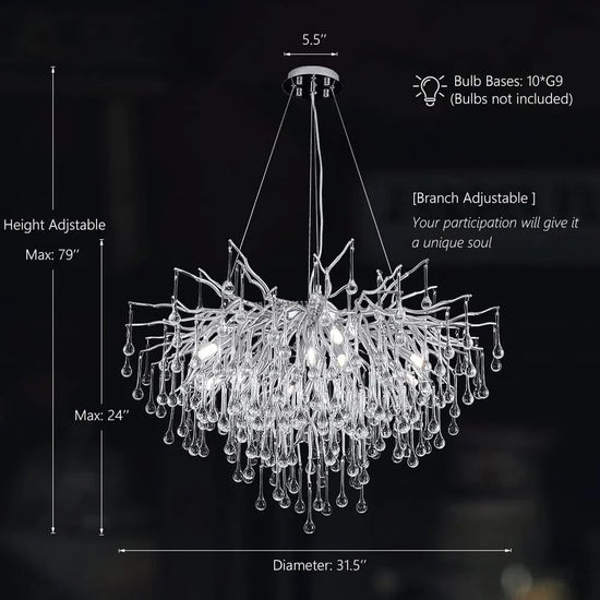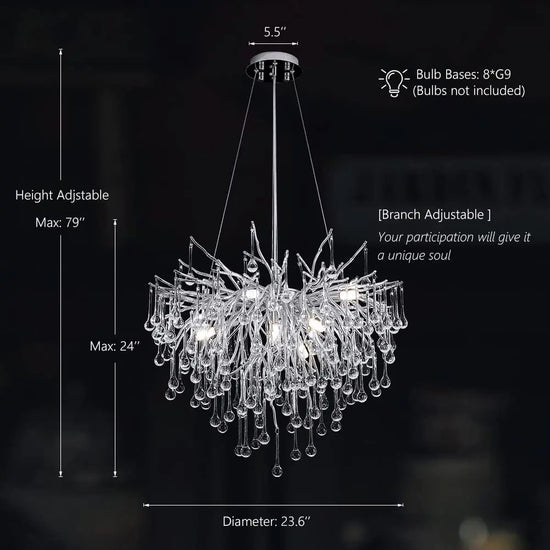 Que vous ayez un intérieur au style moderne, traditionnel ou éclectique, notre lustre moderne cristaux suspendus élégants est conçu pour s'intégrer harmonieusement à votre décoration. Les LED G9 dimmables de haute qualité vous offrent l'option de régler l'intensité lumineuse, rendant ce lustre idéal pour créer des atmosphères variées — que ce soit pour un dîner intime ou une grande réception.