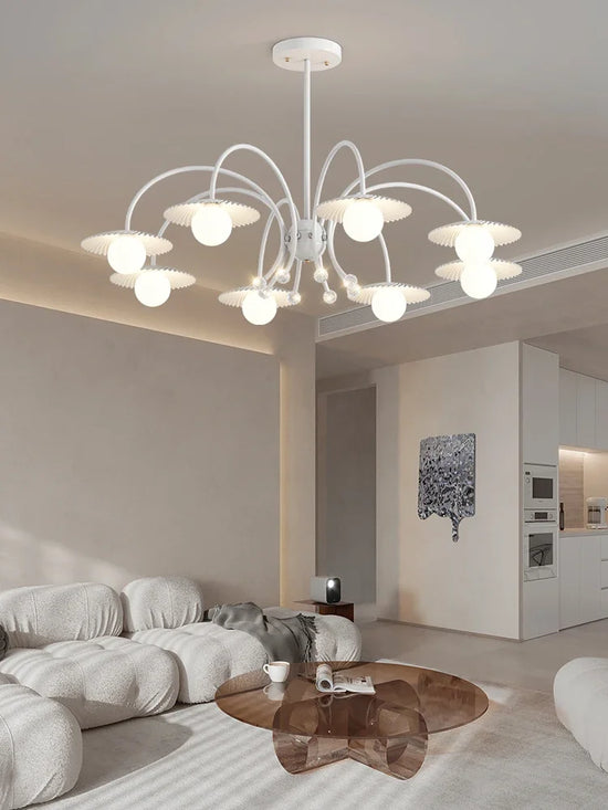 Ce lustre en verre se distingue comme un objet décoratif essentiel, prêt à insuffler élégance et caractère à votre intérieur. Sa structure en fer avec une finition chrome poli et son abat-jour en verre dépoli diffusent une lumière douce et chaleureuse, immédiatement perceptible comme un signe de raffinement. Grâce à son design polyvalent, ce luminaire se fond magnifiquement dans divers environnements : salons, chambres, salles à manger, cuisines, et même des espaces professionnels comme les cafés et bars.