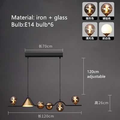 Ce lustre moderne en verre est non seulement un choix esthétique mais aussi un choix pratique. Grâce à son corps en fer robuste qui abrite délicatement des abat-jours en verre, il offre un contraste visuel qui est à la fois subtil et captivant. La fonctionnalité de hauteur ajustable vous permet de personnaliser votre installation selon vos besoins, qu'il soit suspendu dans un bar chic, une élégante salle à manger ou un cosy salon familial.