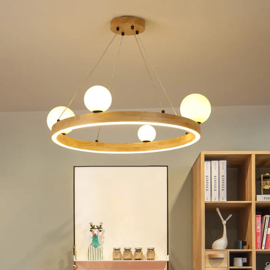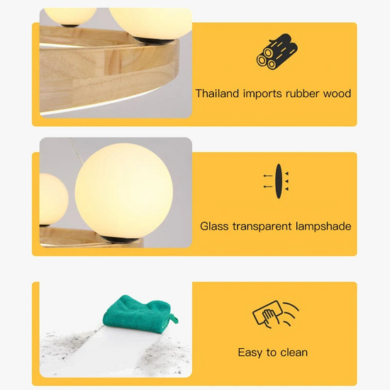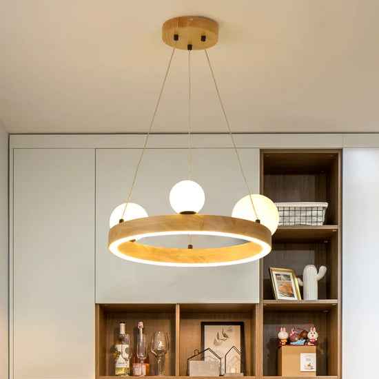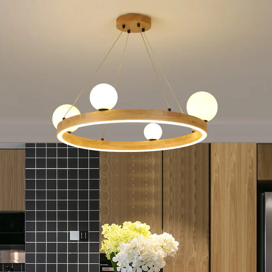 Ce lustre à l'allure nordique dépasse la simple fonction d'éclairage. Sa conception design et son anneau en bois, rehaussés de boules de verre, constituent un point focal qui captive et attire l'œil. Avec ce luminaire moderne, transformez vos intérieurs en espaces élégants et personnalisés.