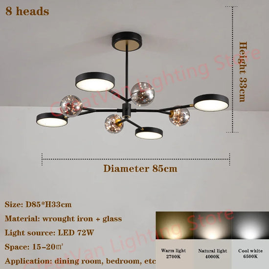 Découvrez le lustre nordique contemporain élégant, une pièce maîtresse parfaite pour illuminer et moderniser votre intérieur. Conçu avec des matériaux de haute qualité comme le verre et l'aluminium, ce lustre apporte une esthétique sobre et raffinée à n'importe quel espace, que ce soit votre salon, salle à manger ou chambre.