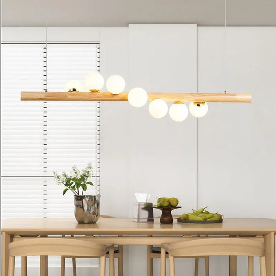 Le **Lustre Scandinave Chic Élégant** se distingue par sa structure en bois de haute qualité et des détails minutieusement fignolés. Les sphères de verre laiteuses diffusent une lumière tamisée et élégante, insufflant une ambiance chaleureuse et accueillante dans toutes vos pièces. Grâce à son style moderne et ses lignes épurées, ce luminaire s'intègre idéalement dans les intérieurs contemporains, ajoutant une touche de sophistication scandinave inégalée.