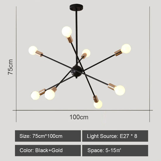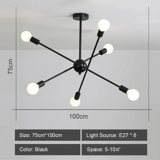 Doté de 6 à 8 sources lumineuses, ce plafonnier contemporain est conçu pour éclairer efficacement des surfaces de 5 à 15 m², créant ainsi une atmosphère chaleureuse et accueillante. Son design multi-branches ingénieux offre une répartition lumineuse homogène, idéale pour rehausser l'ambiance de vos intérieurs modernes.