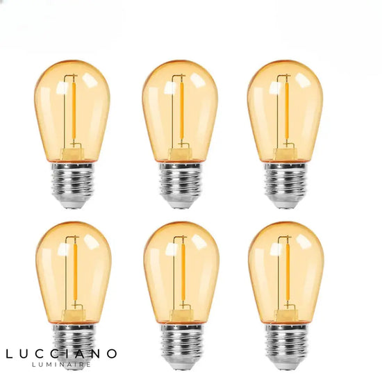 LOT DE SIX AMPOULES S14 E27 2W EN PLASTIQUE AMBRE
