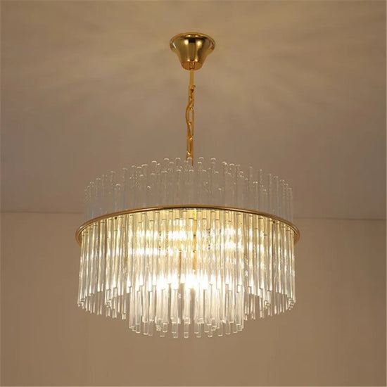 Lustre en Cristal Design Nordique Tige en Verre Métal Doré
